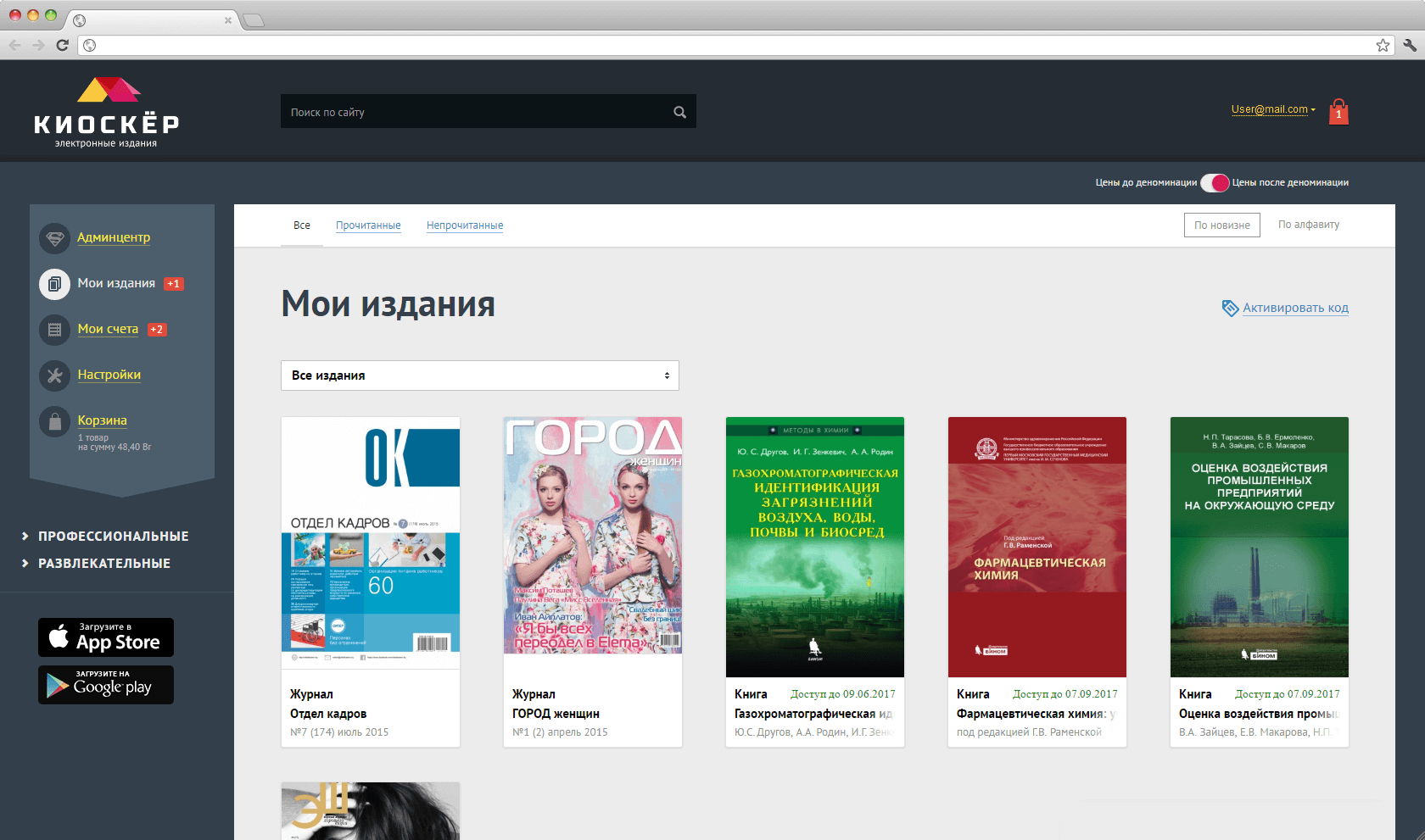 Kiosker is a digital magazine and book shop focused on special professional literature. With Kiosker user can buy a magazine or a book and read it using website or iOS/Android mobile applications. Special attention was given to a content safety and anti-piracy protection.