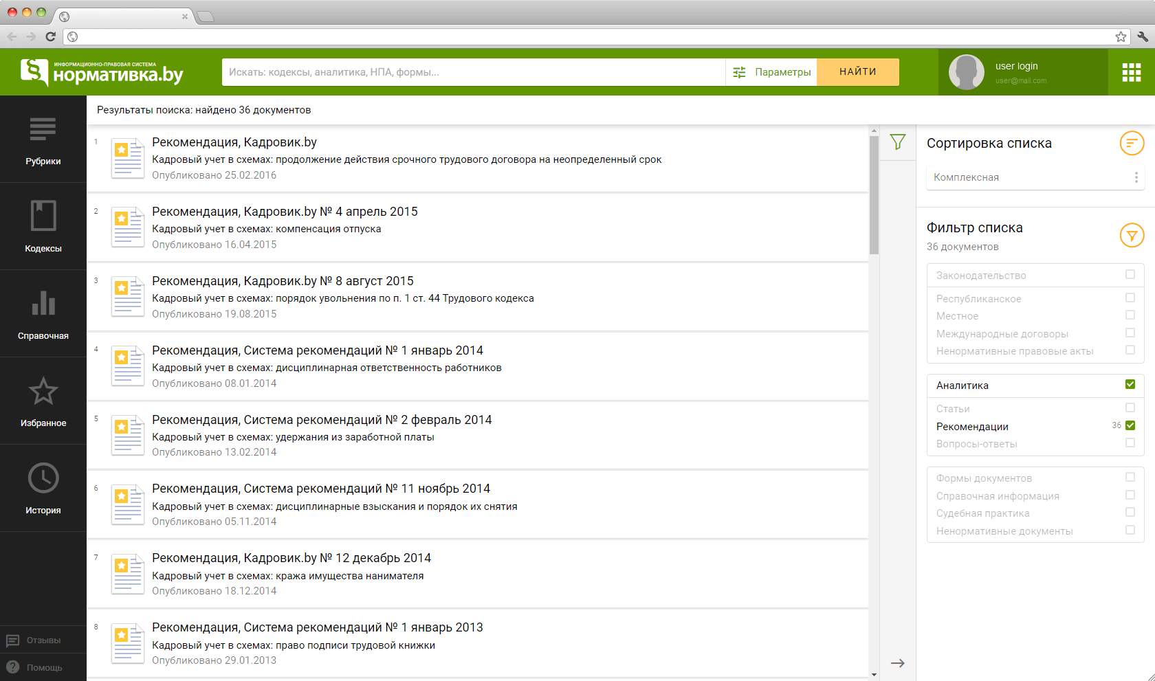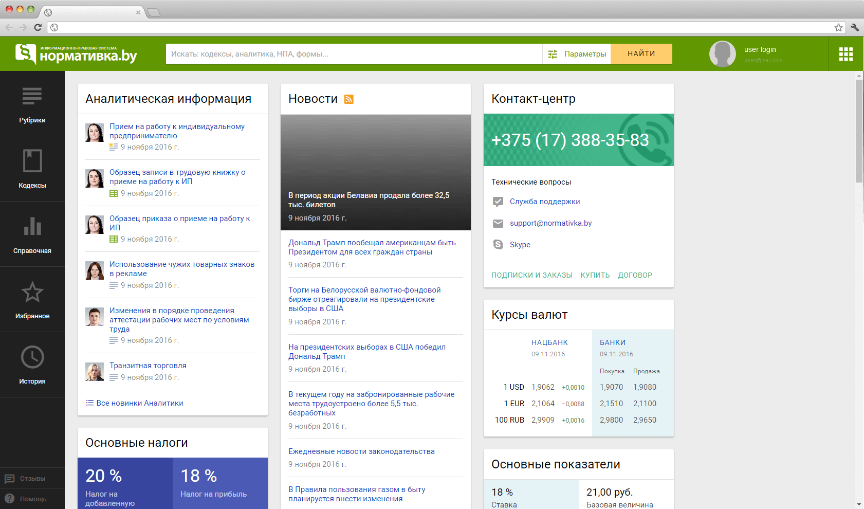 Normativka.by is the first web-based information database for lawyers, economists, accountants in Belarus. It supplies professionals with important information about Belarusian laws and justice practices. Normativka.by is a web application with responsive user interface, convenient navigation and plenty of small useful features.