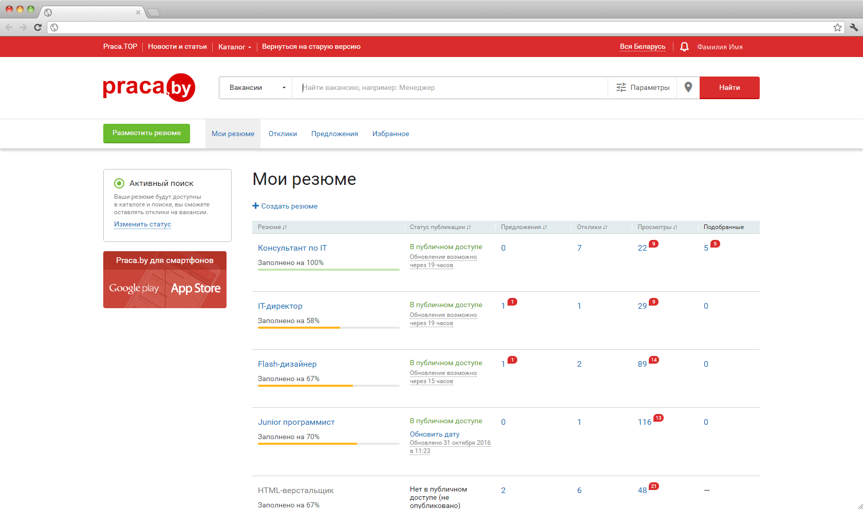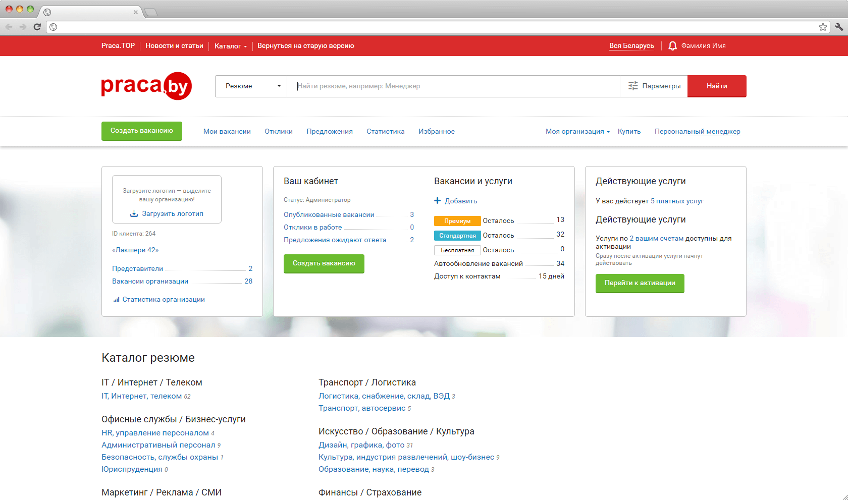 Praca.by had been launched in 2000. In 2012 website owners decided to fully redesign technical platform, that had become outdated and hadn’t stood growing users count. We got the task to develop brand new service platform architecture and to create new website and mobile applications (iOS and Android).