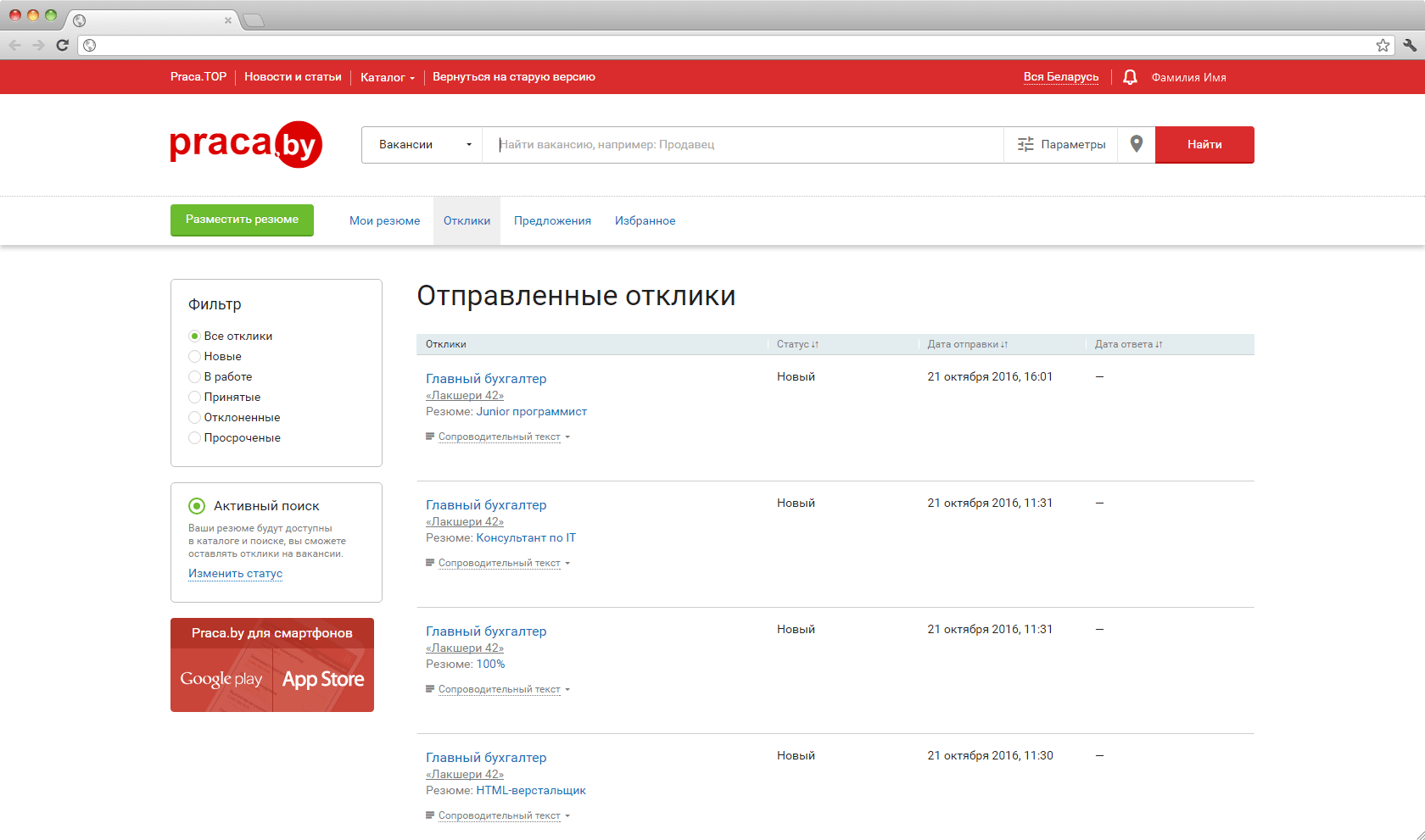 We finished first stage of the project in 2014. It was real success, user base growth has become twice higher, user satisfaction has raised significantly. But it was not the end. We created a dedicated team for Praca.by to support and develop new features for website and mobile applications. We have also been providing part-time professionals for Praca.by on-demand. Our partnership is active and successful now.